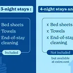 Можливість самостійного приготування їжі спрощується завдяки наданій мінікухні з електрочайником, холодильником і духовкою. Гості також можуть користуватися кавоваркою. Страви французької кухні подають у ресторані "Les Arts Beach", всього лише за 1 км. Апартаменти розташовані на невеликій відстані від найближчої автобусної зупинки Soleil Village.